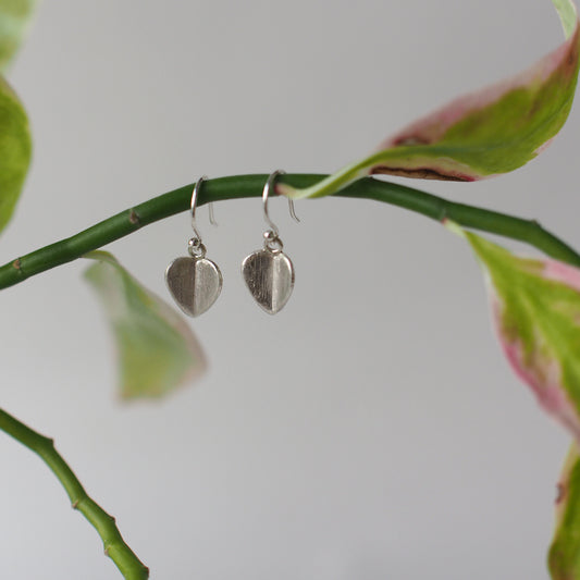 HEART LEAF Handmade Silver Hook Earrings