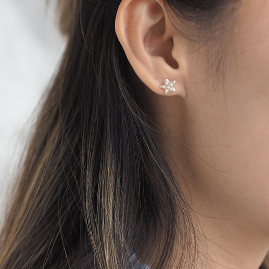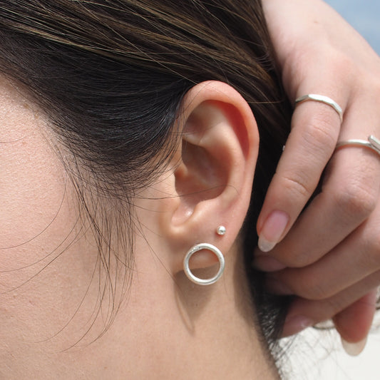 . Earring stem and base made of 92.5% silver, 7.5% copper.